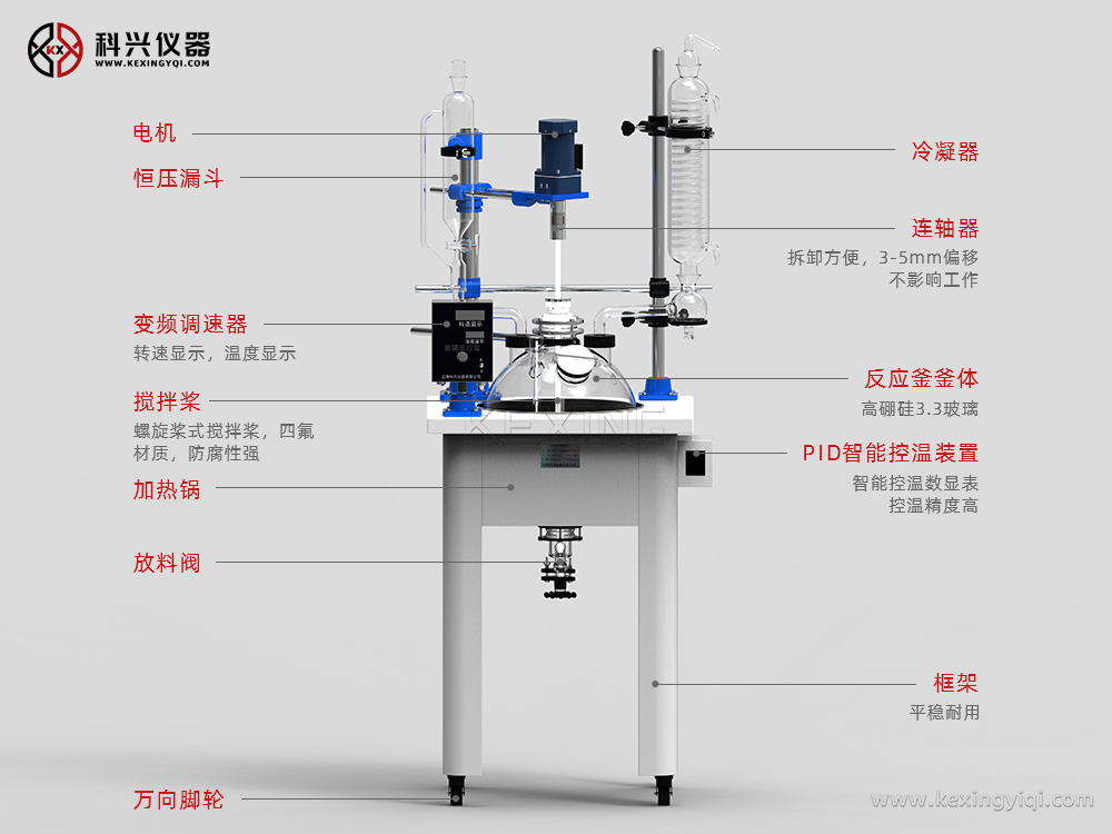 該系列反應(yīng)釜是我公司根據(jù)客戶實(shí)際需要及規(guī)定標(biāo)準(zhǔn)的新型單層玻璃反應(yīng)釜,其吸收了國內(nèi)外同類產(chǎn)品的優(yōu)點(diǎn),同時大膽創(chuàng)新,不僅使用方便(可一人方便移動,操作,清洗,安裝,拆卸),而且結(jié)構(gòu)新穎實(shí)用,外形美觀大方;誠為現(xiàn)代化學(xué),精細(xì)化工,生物制藥,新材料合成等試驗(yàn)及生產(chǎn)的理想設(shè)備。該反應(yīng)釜工作原理:玻璃反應(yīng)釜內(nèi)放反應(yīng)物料,同時可抽真空做攪拌反應(yīng);外部水(油)浴鍋可加水或加熱油進(jìn)行加熱反應(yīng);并能控制反應(yīng)溶液的蒸發(fā)和回流,恒壓加料等功能。(可選配制冷組件,配合制冷源進(jìn)行低溫反應(yīng))